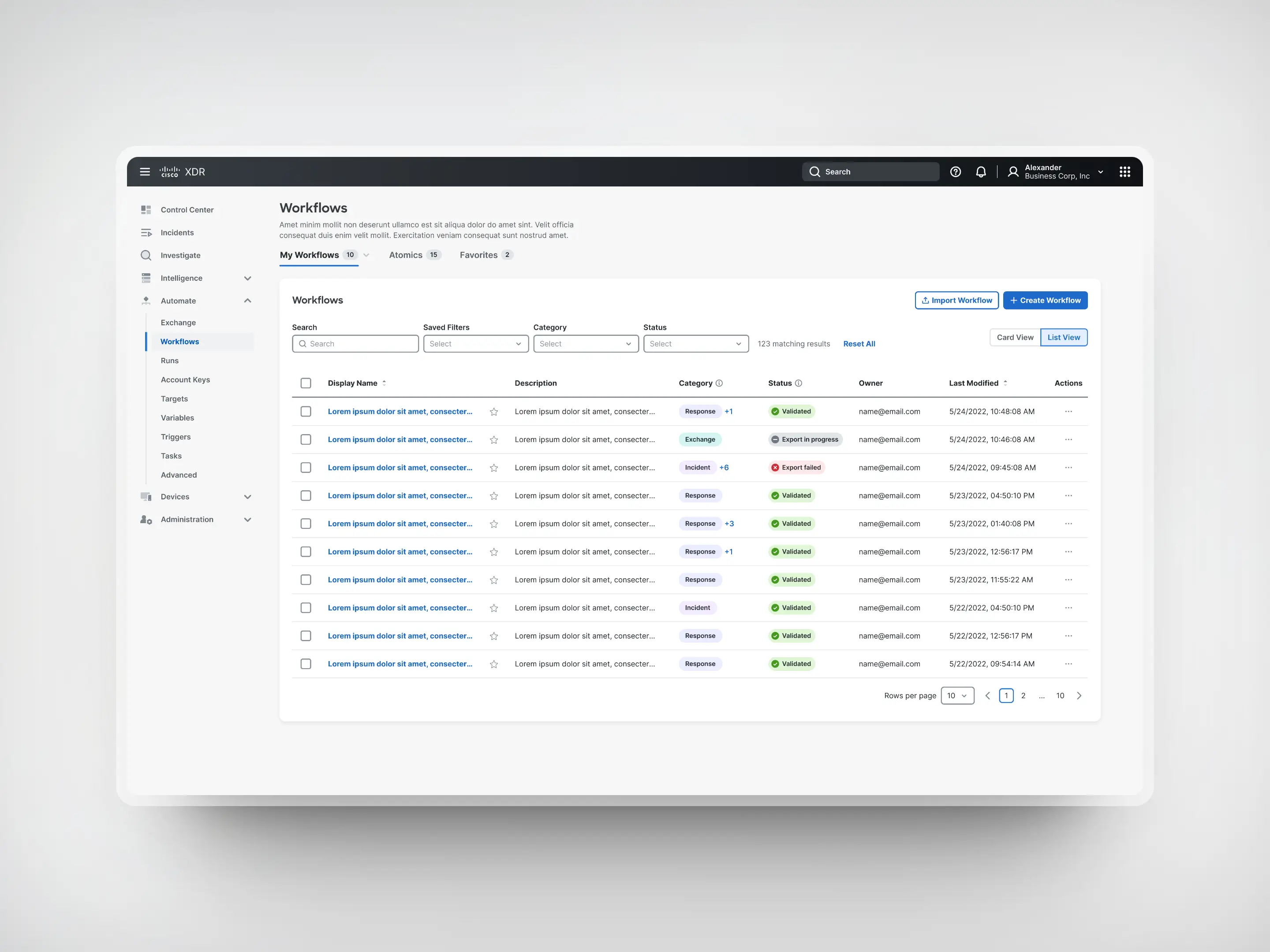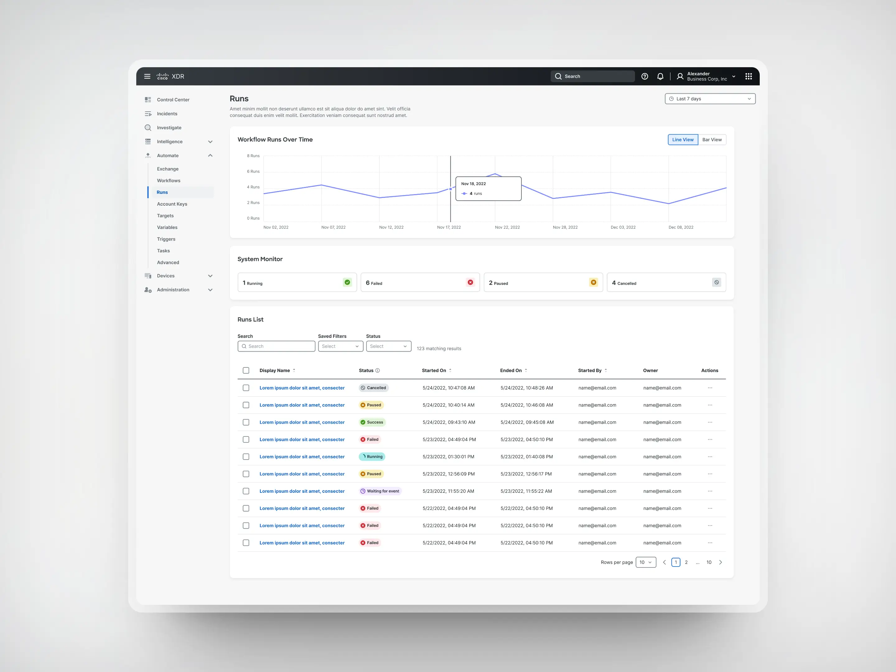 Once our conventions were established, we started translating our low-fidelity wireframes into high-fidelity designs using the design system. These designs were then vetted during our design cycles with the Cisco design teams to collaborate and receive feedback.