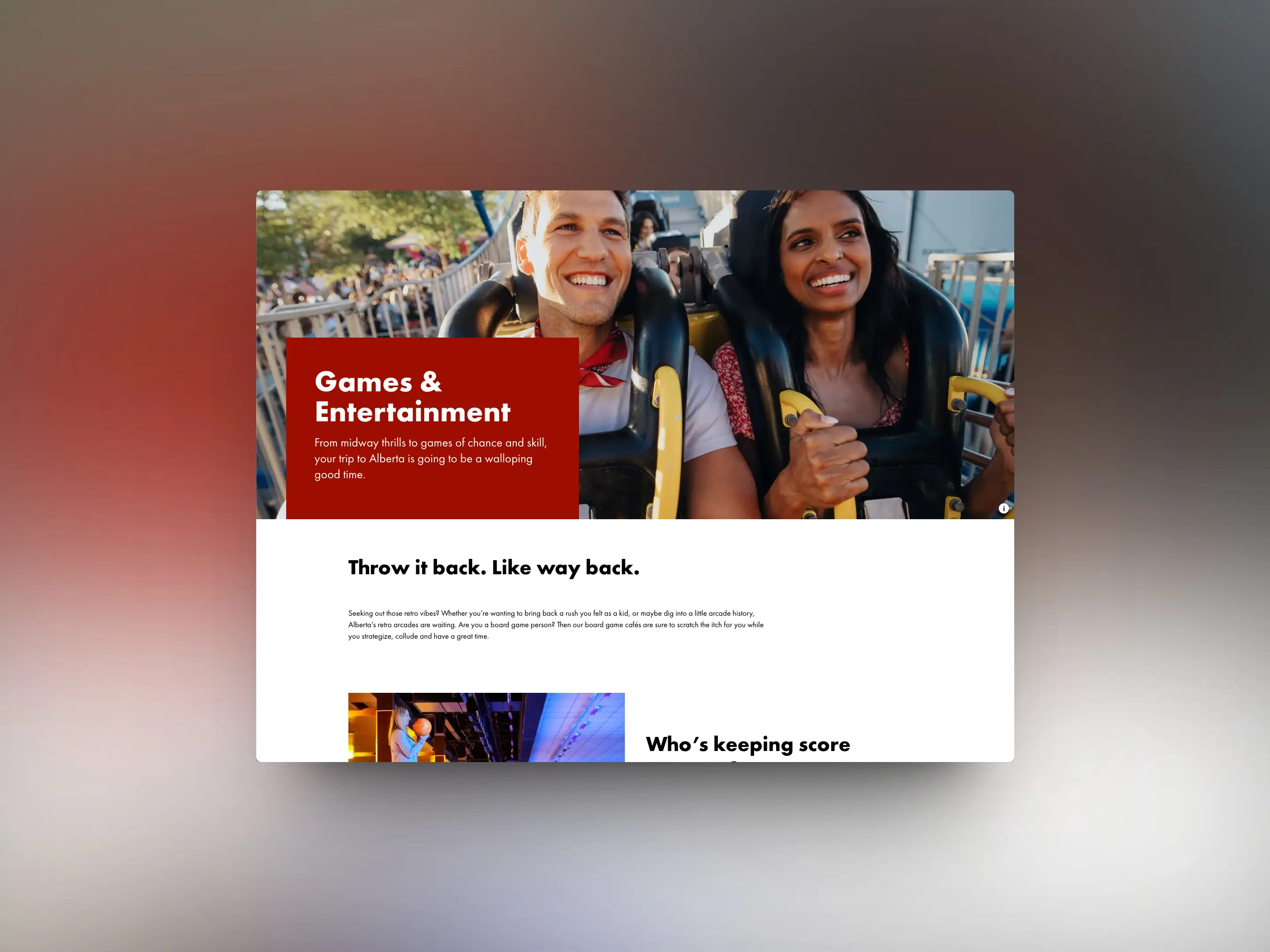 The primary goal of the consumer site is to inspire potential travellers to choose Alberta as their primary travel and tourism destination.